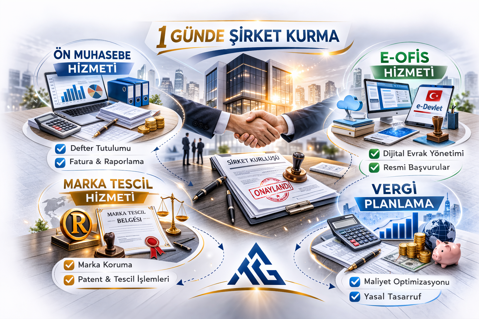 ATG Mali Müşavirlik olarak, şirket kuruluş süreçlerinizi hızlı, güvenilir ve eksiksiz şekilde yönetiyoruz. Doğru planlama ve profesyonel yaklaşımımız sayesinde, şirketinizi 1 gün içerisinde kurarak ticari faaliyetinize en kısa sürede başlamanızı sağlıyoruz.
